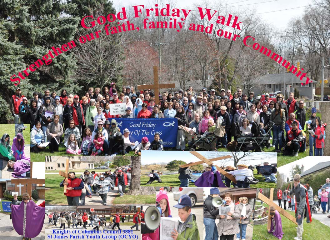 Every year, on Good Friday, the Knights of Columbus Council 3881, in Oakville, will be hosting a 'Way of the Cross Good Friday Walk', which starts at 9:00am at St Andrew's Roman Catholic Church, and ends at around 2:15pm at St Dominic's Roman Catholic Church. Hot Vegetable and bean Soup, bread and refreshments will be served at around Noon at St James Roman Catholic Church and refreshments will be served at St Dominic's Roman Catholic Church at around 2:30pm. Please bring your family and friends.